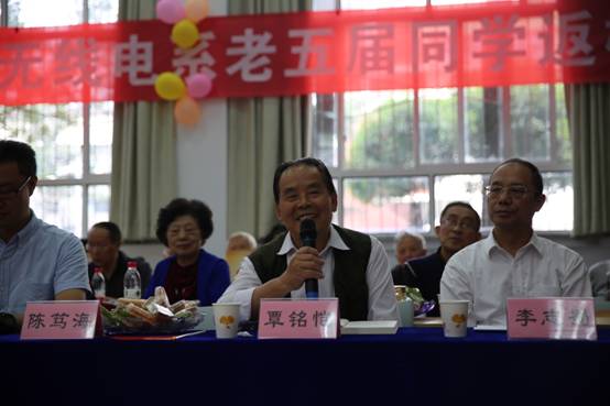 在老教师代表的发言环节中,原无线电系系主任王保义老师首先进行发言,他回忆起了老五届同学的劳动过程,赞扬其优秀素质,表达了对校友的深切感情,同时代表教师群体对校友进行慰问,希望大家能树立优秀榜样,继续学习。原64级辅导员王敦平老师首先表达了对校友会举办的喜悦之情,饱含深情地回忆过去时光并表达了对诸位校友的真切祝福,希望大家都能好好生活、幸福健康。原老五届授课教师陈明俊追忆起当年无线电系的师生生活,言辞间提及221实验室等诸多往事,表示大家在数十年里共同见证了国家的繁荣发展,深情表达出对母校、党和国家的感激与热爱。