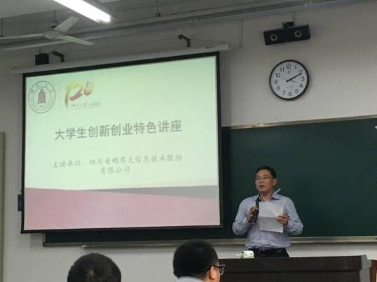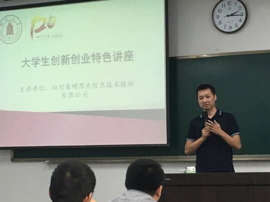 9月29日下午2时,MX动漫 校庆系列讲座之——大学生创新创业特色讲座在望江校区二教201顺利召开。副院长周新志教授,明厚天副总经理李明先生,中国合伙人主席陈宣兵先生,成都创之道科技有限公司董事长王非先生出席讲座。