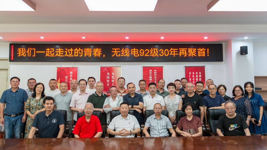 无线电系92级(专科)毕业三十周年校友返校活动在基础教学楼A303会议室举行。本次活动以“忆往昔 再聚首”为主题,近三十名校友与学院领导、老领导以及时任老师欢聚一堂,共叙同窗情谊,重温青春记忆,展望美好未来。